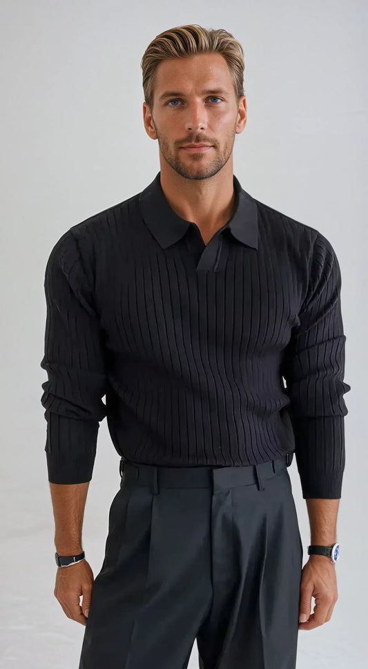 Gestreepte Polo Met Lange Mouwen - Zwart